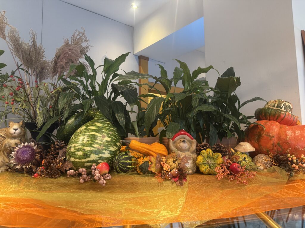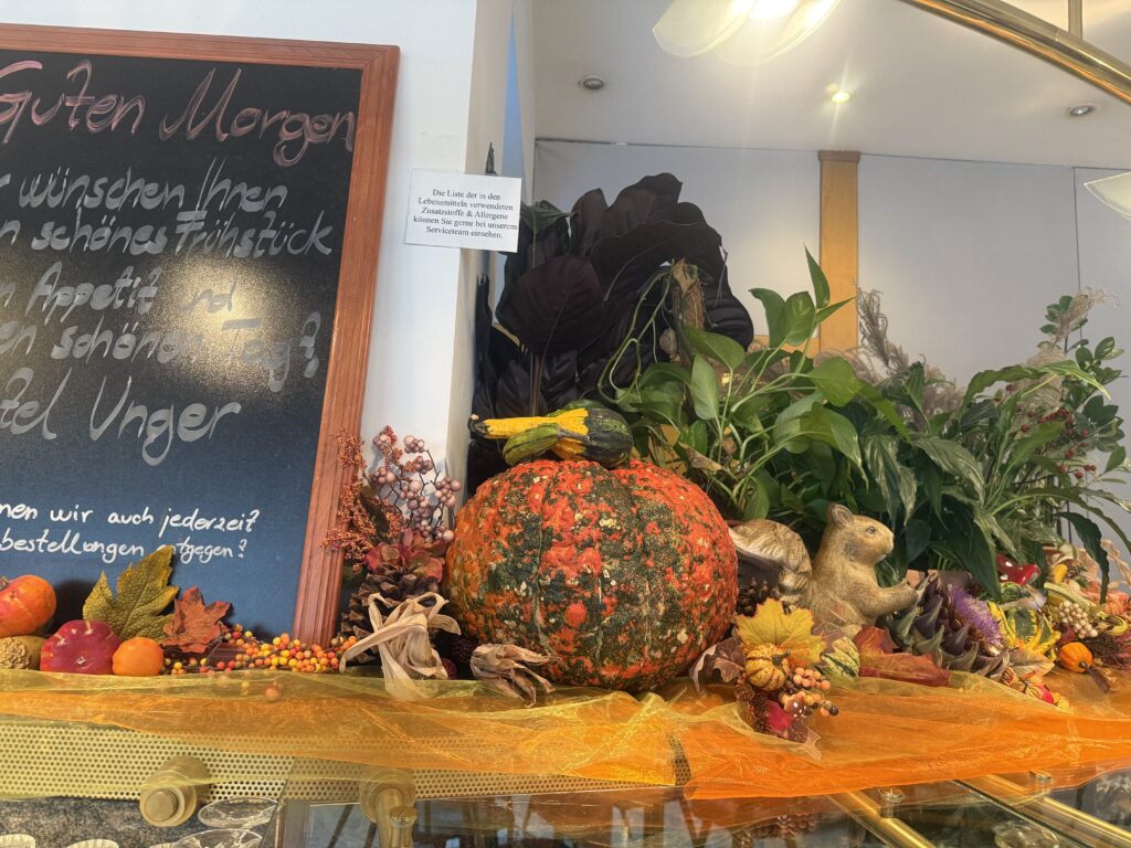 Unser Frühstücksbüffet zeigt sich in herbstlichem Gewand – mit liebevoller Deko, warmen Farben und saisonalen Köstlichkeiten.